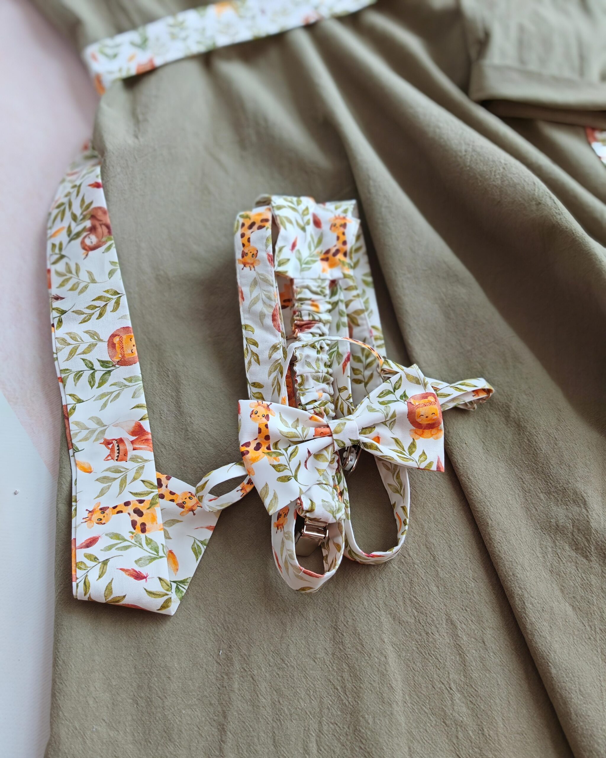 - Setul băiatului include cămașă, pantaloni asortați si accesorii asortate – papion si bretele.
